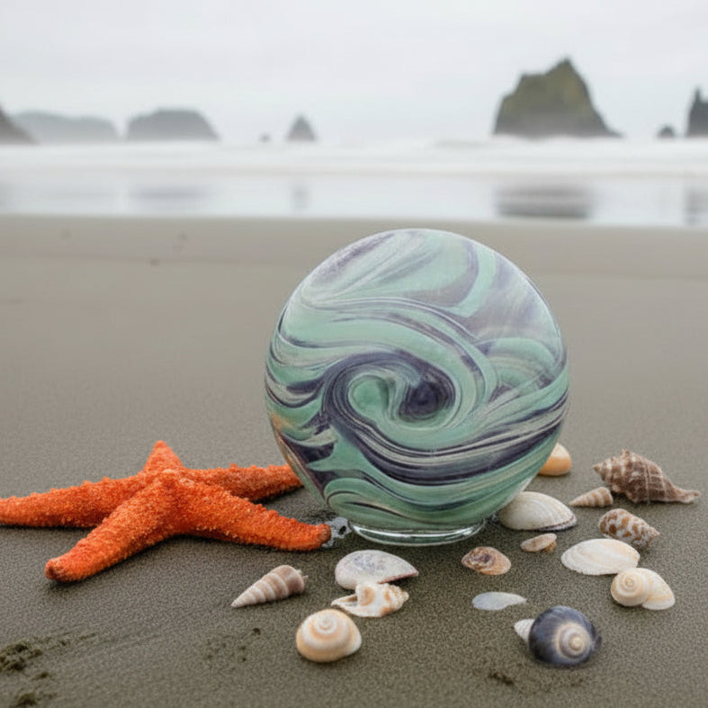 Glass floats are designed to be lightweight, and their ability to float on water is due to their hollow interior, which traps air. They were used by fishermen worldwide, especially in the mid-20th century, but were largely replaced by plastic floats over time due to durability concerns. Glass floats are now often considered collector's items, with some people searching for them along beaches, where they may wash ashore after being lost at sea.