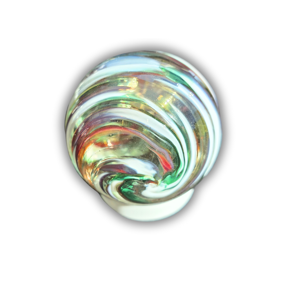 A glass float is a buoyant, spherical object traditionally used in fishing, specifically for holding fishing nets afloat. These floats are typically made of glass and are often round or slightly oval. They come in various colors. The surface is can be smooth, with some having patterns or bubbles trapped inside the glass during the manufacturing process, giving them a unique, handcrafted appearance.