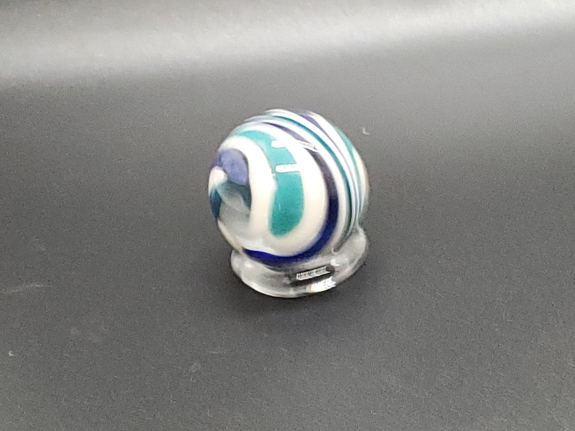 DISPLAY FOR COLOR PICKING ONLY, PATTER WILL DIFFER. These marbles are handmade from glass rods. The color rods are mixed and twisted to form the color combos. once the glass is done, it is put in an annealer where it is brought up to 1010 degrees F. It is then brought done to room temperature or the course of 10 hrs. This process is down to help prevent the glass from breaking due to temperature changes around it. Color may vary based your screen. Marble stand sold separately.